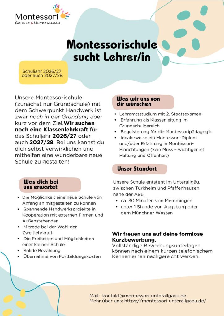 Du bist eine erfahrene Montessori-Pädagogin oder ein Montessori-Pädagoge, der/die eine Leidenschaft für das Handwerk hat?