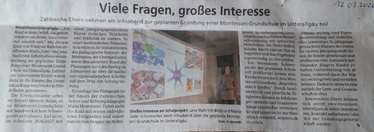 Informationen über die Gründung unserer neuen Montessori Schule im Raum Türkheim bis Erkheim